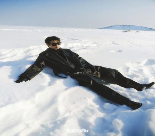 缆车摇晃着继续向上,阿尔泰群山就像从镜头里推出来一样,一座座沉甸甸地往远方延伸。它们早在人类出现以前便已存在,也将在人类消失之后继续屹立,一种亘古的、一眼望不到边的辽阔涌上心际。温度随着海拔攀升不断降低,太阳却更加亮,前后的路都被雪掩平,皑皑的积雪看不出厚度,一脚踩下去就没了脚踝。表层的薄雪之下是坚冰,穿着皮鞋的魏大勋开起了玩笑:“穿这双鞋可以直接滑了。”工作人员不留神儿,连续摔了好几跤,魏大勋柔声提醒大家小心。但雪乡里长大的人都不怕摔,跌倒了会自个儿爬起来,拍拍手继续走,人抵御自然寒流的能力强了,抵御生活寒流的能力自然也会渐长,这在东北话里叫“皮实”。
