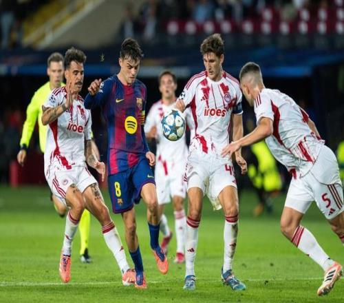 10月21日,巴塞罗那队球员佩德里(左二)在比赛中进攻。当日,在2025-2026赛季欧冠联赛阶段第三轮比赛中,西甲巴塞罗那队主场6比1战胜希腊奥林匹亚科斯队。新华社发(胡安·戈萨摄)