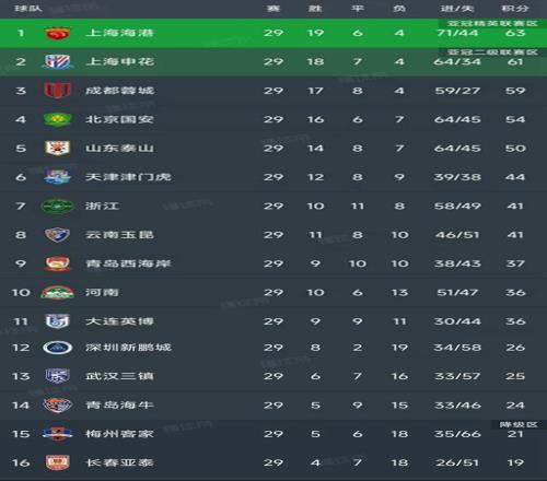 北京时间11月3日,中超第29轮的比赛在昨天已经全部结束,争冠、保级的格局已经明朗,我们一起看看最新积分榜变动!