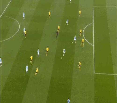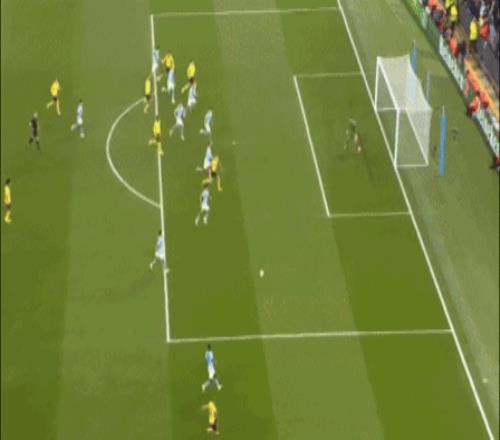 比赛第22分钟,赖因德斯送出直塞,太子福登停球、转身、拔脚,一气呵成,皮球直奔死角,曼城1-0领先。