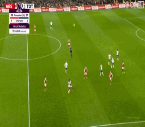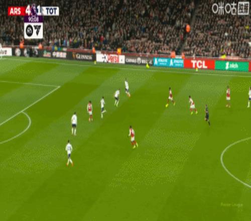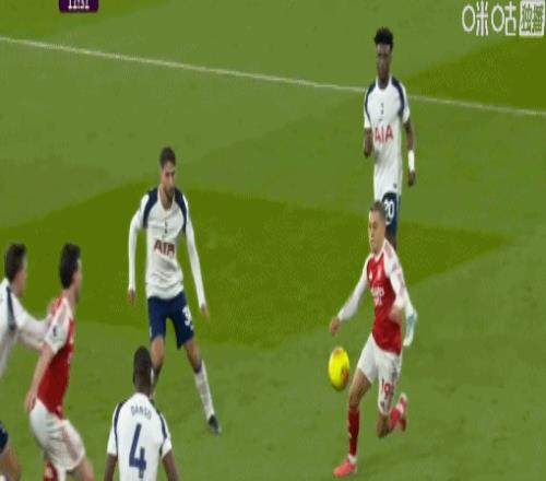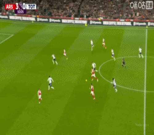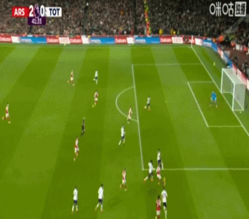 第36分钟,接梅里诺传球后,特罗萨德潇洒转身射门得手,阿森纳1-0领先!