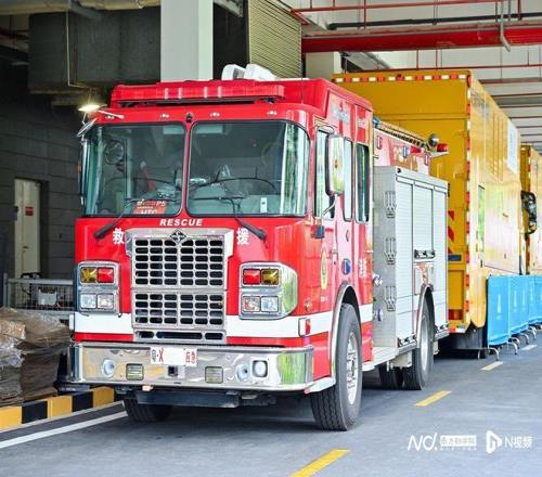 现场消防车。